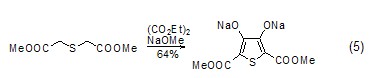 合成噻吩類化合物 在堿的條件下,乙二酸二乙酯與β-硫醚二酯類化合物可合成噻吩衍生物 (式5)[10],采用類似方法也可合成硒代噻吩衍生物[11]。